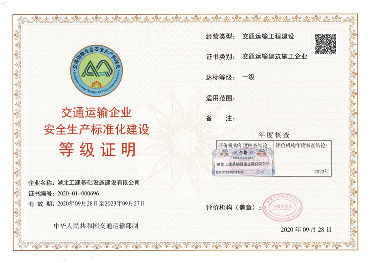 安全生產標準化達標一級